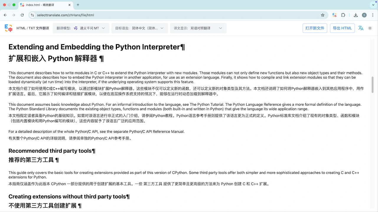 精挑翻译,支持离线 HTML 文件和 TXT 文件的翻译。无论是静态 HTML 格式的产品文档还是 TXT 格式的小说文本,都可智能识别,实现逐段双语对照翻译。
